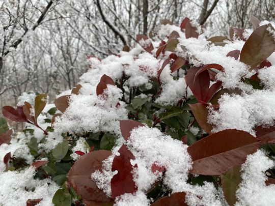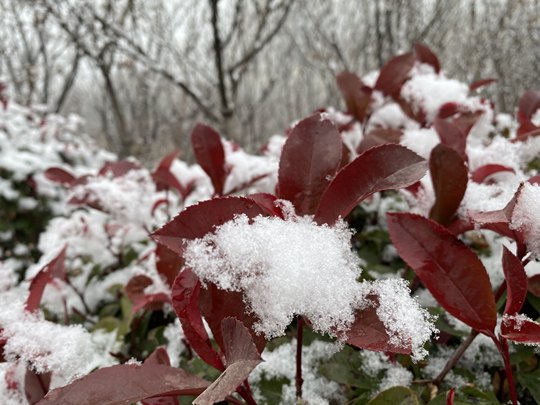 冬去春来觅芳华, 二月不见草萌芽。 白雪只恨春来迟, 挥袖抖落满树花。