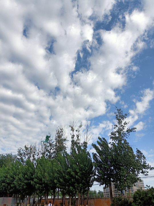 云在天上飘,树在空中摇,人在地上跑,好!