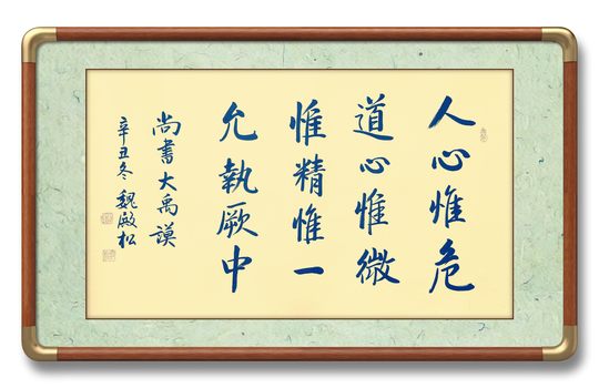 “惟精惟一,允执厥中。”意思是惟有精心体察,专心守住,才能坚持一条不偏不倚的正确路线。