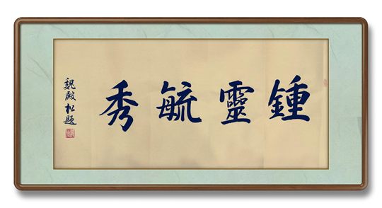 为山东驿山题写的牌坊匾额:钟灵毓秀