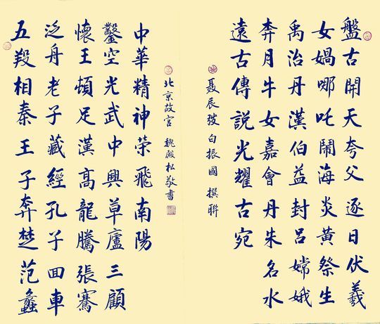 魏殿松,故宫博物院书法家,书法定制:为公司公园公寓学校会所家庭办公室服务