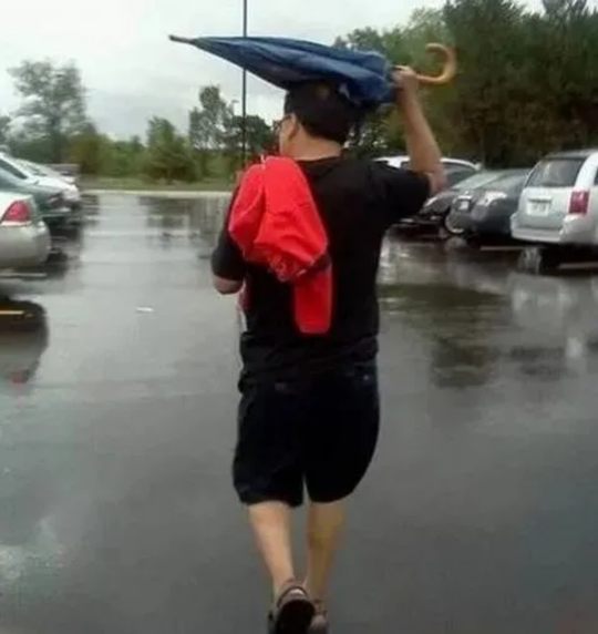 他可能是忘记自己有伞了吧