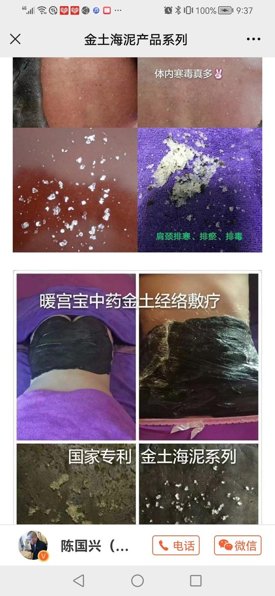 【国家专利金土海泥经络敷疗】 把体内的风湿,风寒,热毒,酸,麻,肿,胀,痛能够有效的排毒体外。