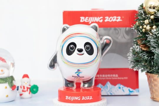 冰墩墩左手挥舞,掌心还有一颗小爱心,代表着主办方对世界各国的欢迎。