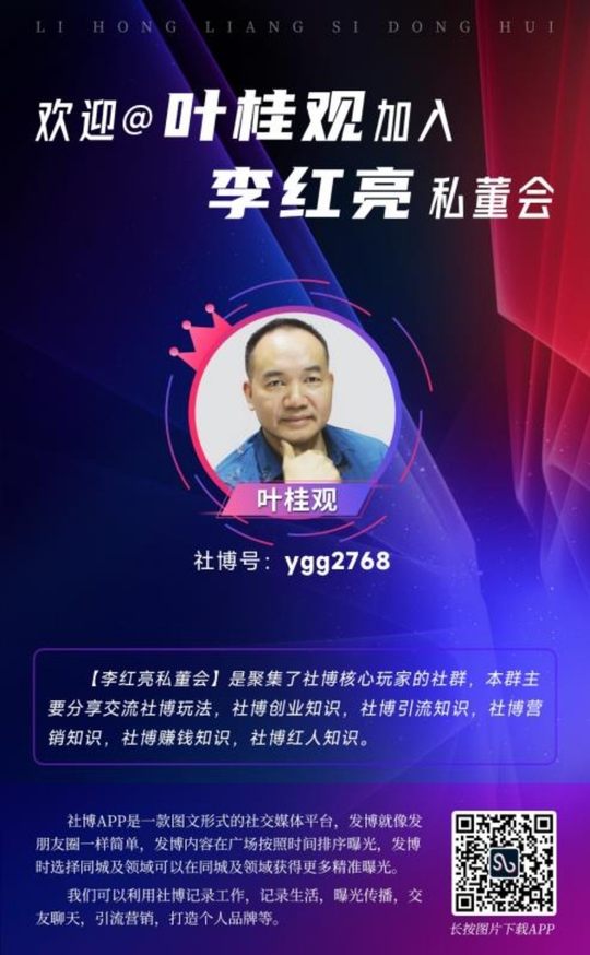 2022年2月8日第39天发博分享: “社博”是一个圈子,当你开始玩社博那一刻起就进入了“社博”这个圈子,你可以在这个圈子里展示表现自我,让这个圈子里的人都认识你和认可你。 ———李红亮