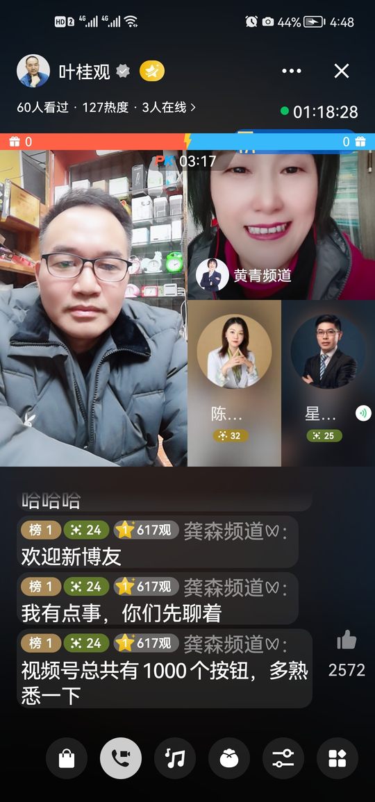 2022年2月25日第56天发博分享: 首先迈出第一步就是试播感,熟悉直播各个按键功能,感恩李红亮师父指点迷津,感谢龚森频道陪伴指教,感谢617亮家军支持点亮617观粉丝团,打造知名度,不断的在更多人面前曝光自己。
