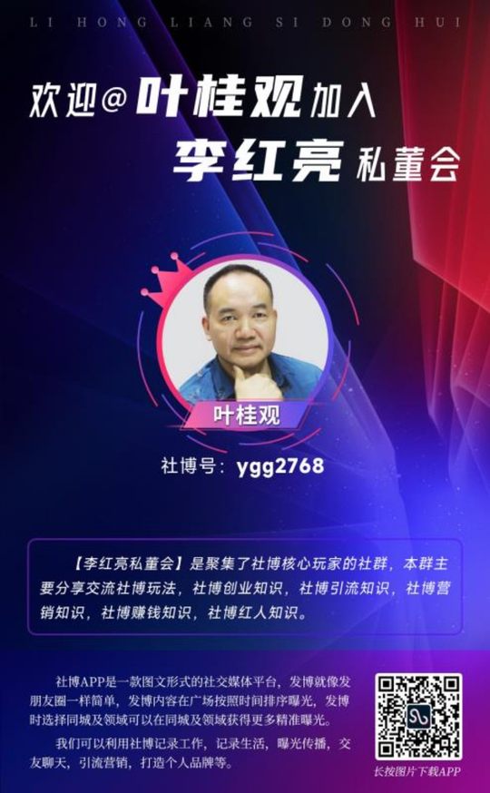 2022年1月16日第16天发博分享: 社博是一个流量池,谁想来捞流量就捞流量。社博是一个巨大的圈子,谁想进来就进来。社博是一个广场,谁想来曝光就发博互动。 ———李红亮
