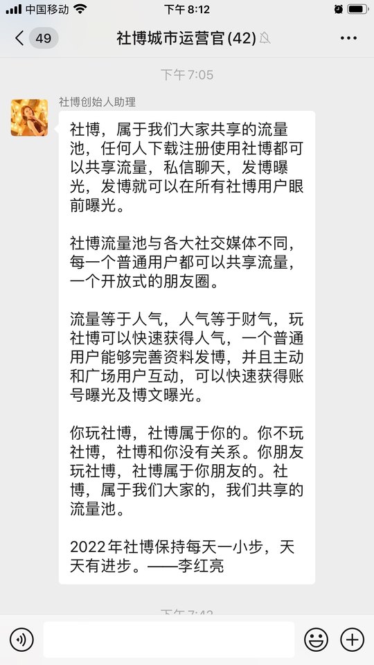 把社博当微信一样使用,你发布一条社博的传播力大于任何人的朋友圈传播力。