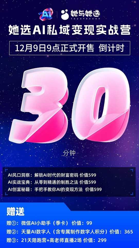 12月9日9点,AI私域变现实战营即将开启!