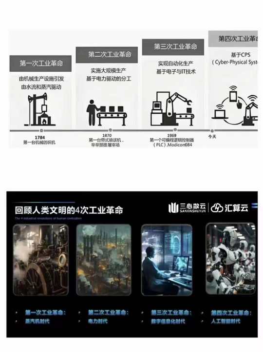 第一次工业革命 蒸汽机 第二次工业革命 电力 第三次工业革命 互联网信息 世界公认的 第四次工业革命 AI人工智能 算力在其中的角色意味着什么? 你看懂了吗[勾引]