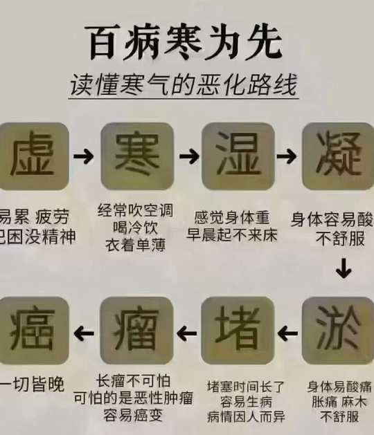 给姐妹们分享个图 俗话说:“一种寒,一种病” 寒在哪里,病就在哪里。 中医讲百病寒中生, 温度决定生死。 一张图诠释寒的部位对照, 看看,你的“寒”在哪里…