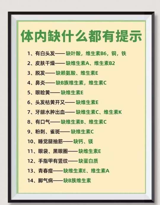 你的体内缺乏哪种维生素❓快来对照下👇 👉快来自查,不同维生素缺乏的表现情况!你占了几个?