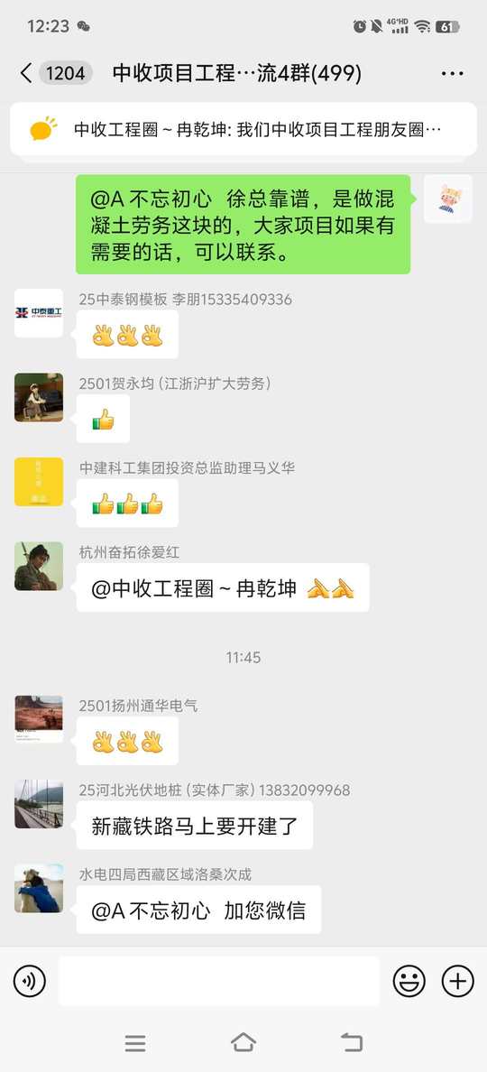 中收项目工程朋友圈社博群已经建立了,欢迎做工程的朋友加入我们交流学习,非工程类勿扰,不能发布无关广告,可以在群里介绍自己的业务。