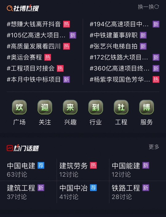 恭喜我们中电建荣登热门话题榜首,感谢各位的支持和关心、中电建集团兄弟单位可以互关私我,把你拉到“中电建大家庭群”,同样各工程局、工程老板等工程圈朋友也可以私聊,我们资源共享合作共赢,华中五省市场开发,期待与您结缘。