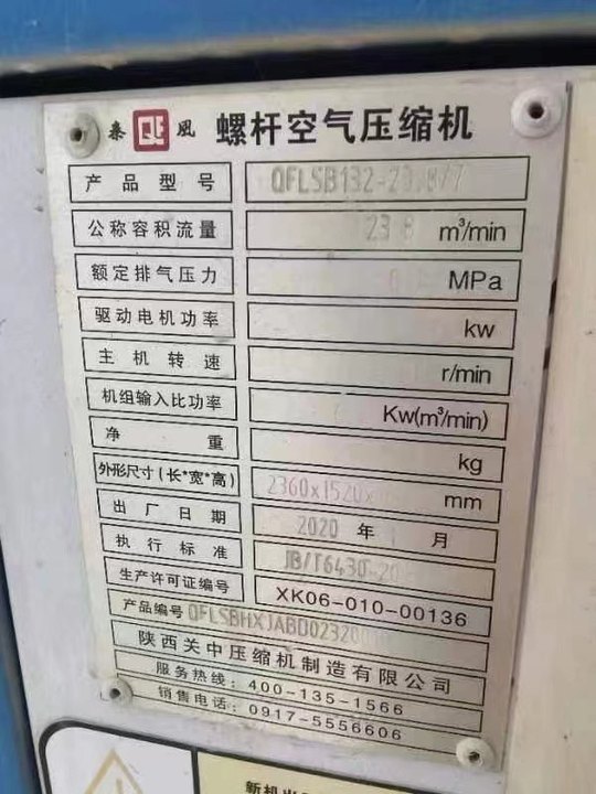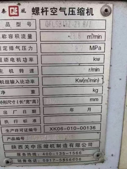 湖南处理三台20年秦风空压机,都有试机视频,证件齐全,需要的老板请联系