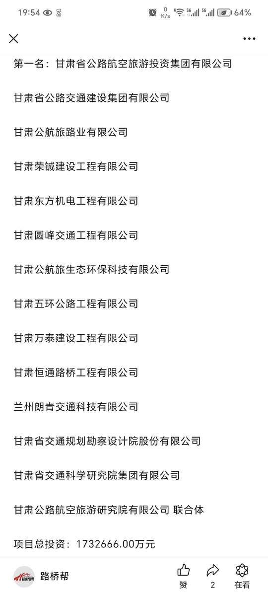 173亿!这条高速公路项目中标了!!S35景泰至礼县高速公路景泰至靖远段项目特许经营者。 求引荐!