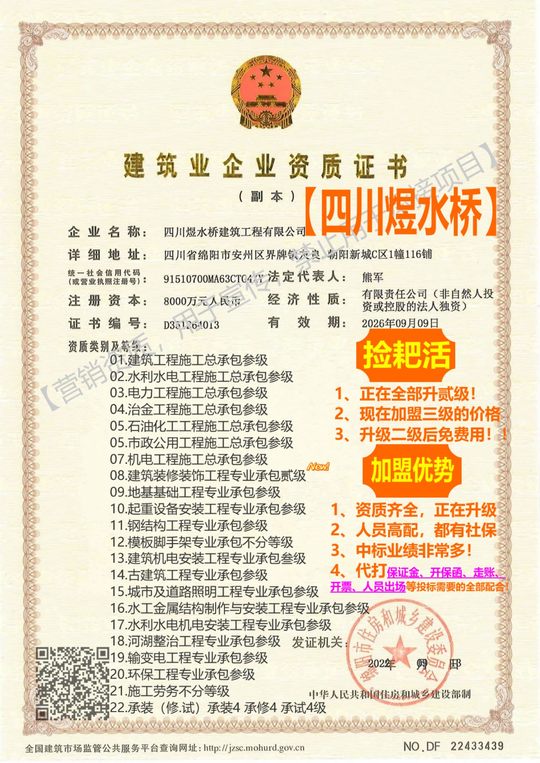 你接工程还在挂靠,赶紧加盟我们成立分公司! ➕私人V❤158-2370-3046 专业工程资质加盟分公司和优质项目项目对接 旗下175余家建筑公司 涵盖最全建筑资质 ⏩加盟分公司有4万家,提供施工、设计、监理、勘察等200多项一级、二级、三级资质! 独立经营 独立账户 资源共享