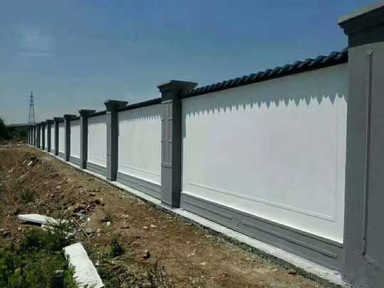 🏗️预制围墙:是采用氧化镁等原料通过模具浇筑而成。由墙板四周的卡槽与上下梁、立柱、柱帽等配件拼装而成。可选择涂装颜色,灰色柱子白色墙体是最受欢迎的颜色。 🏗️规格尺寸:整体墙高2.2米,柱高2.5米,墙板厚度约6公分。 🏗️使用范围:适合工地封闭,道路两侧美化,租售土地围建等工程。单个班组每天完工量150-200米。
