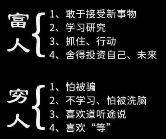 世界上最大的两个谎言就是 一:我没时间 二:我没钱 80%的普通人都陷入这种恶性循环, 一直没有时间,结果一辈子也没有钱[微笑]
