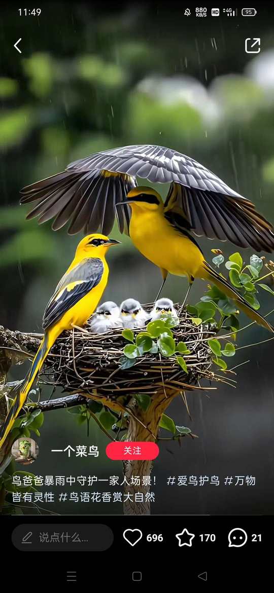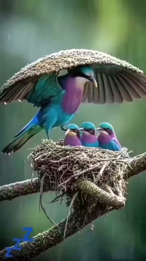 鸟爸爸,撑起了,保护一家人