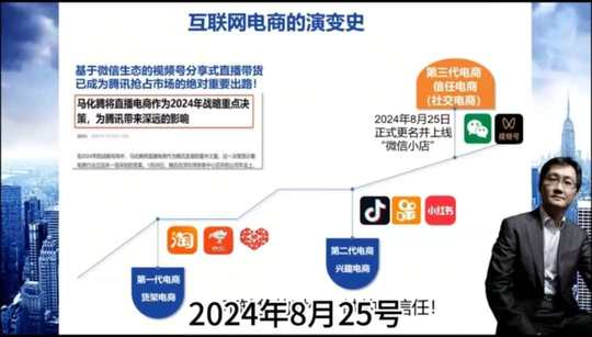 腾讯集团把微信电商作为整个腾讯集团的战略重点的决策, 它是基于微信生态的视频号分享形式。 第三代电商信任电商,也可以理解成社交电商横空出世, 2024年8月25号,腾讯将视频号小店正式更名,并上线为微信小店, 谁掌控的流量,谁就拥有话语权, 对吗? 微信的活跃的用户达到13.49亿