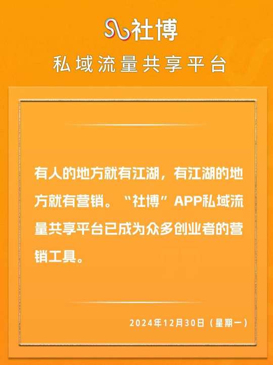 你缺流量吗?在公域你获取流量的成本高吗? 顿悟哥🈶彻底解决大家获取精准流量困难的〖免费〗方案,真心想学且相信我的小伙伴🉑以私信我。 有人的地方就有江湖,有江湖的地方就有营销。 【社博】APP 私域流量共享平台已成为众多创业者的营销必备工具。