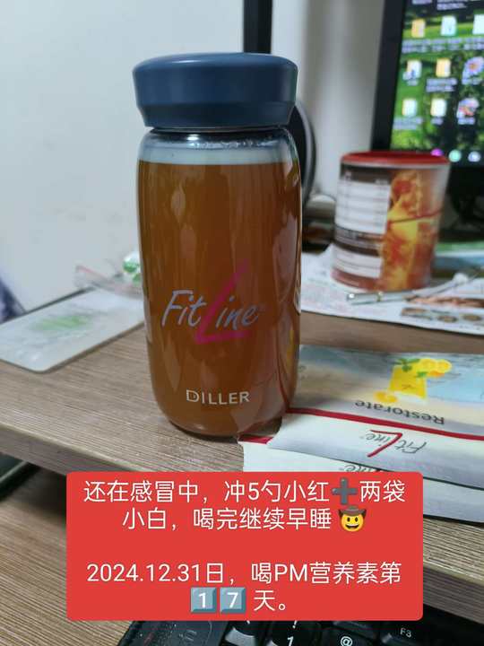 还在感冒中,冲5勺小红➕两袋小白,喝完继续早睡 🤠 2024.12.31日,喝PM营养素第 1️⃣7️⃣ 天。