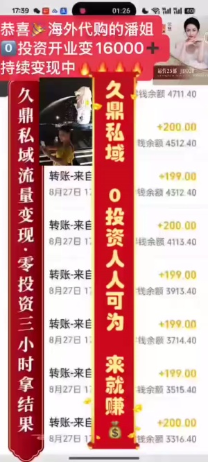 跟我干0投資私域变线 伙伴日收如💰9086