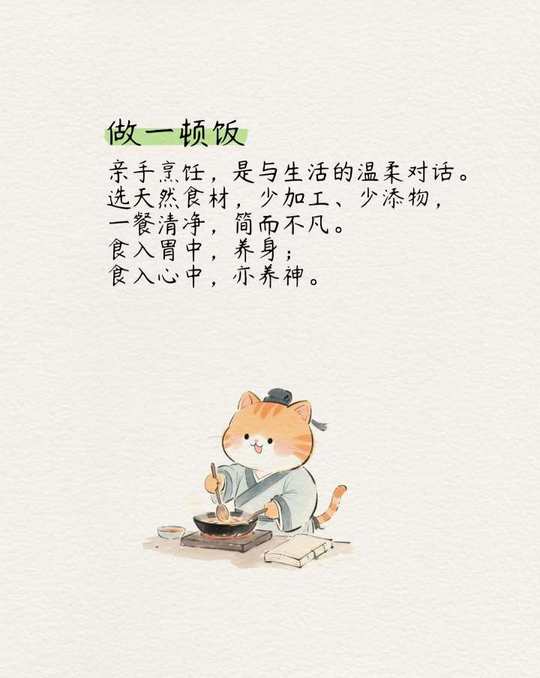 古人讲“修身以静为本”, 独处,不是孤独,而是疗愈的开始。 让心重新安定、身体重新归位[爱心] 独处,不是逃避现代生活, 而是用“慢”的方式,重拾内在秩序。 当你学会独处, 也就学会了与世界温柔相处[拥抱] 不过话说回来,性格不同,做法不同,根据自身情况来调节生活方式,情绪波动,才是最为实际的[愉快]