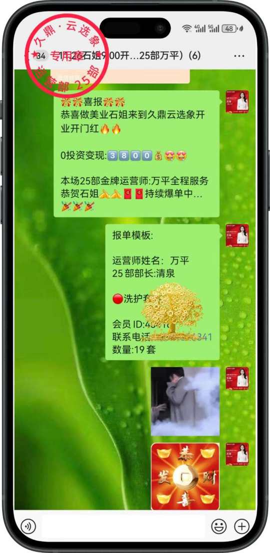 今日带做美业石姐来到久鼎 云选象开业开门红🔥🔥 0投资变现:3⃣️8⃣️0⃣️0️⃣💰[色][色] 恭贺石姐[抱拳][抱拳]🧧🧧持续爆单中…[庆祝][庆祝][庆祝]