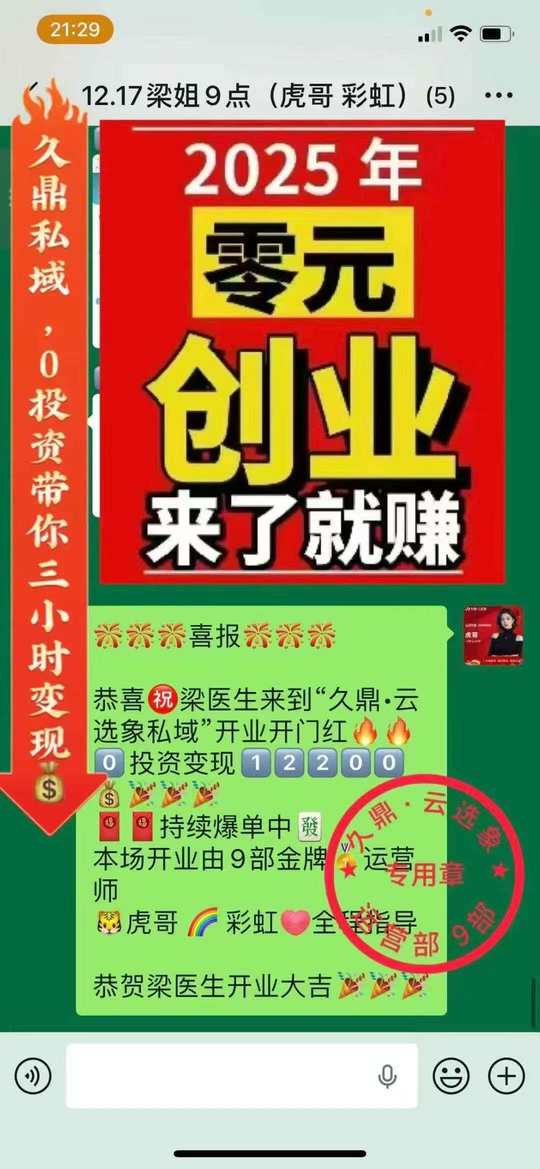 🔥做私域我是认真的[呲牙] 只要有微信都可以参与[调皮] 当天开业就可以赚米3~5位数[666] 来者必赚,没有任何试错成本[机智]