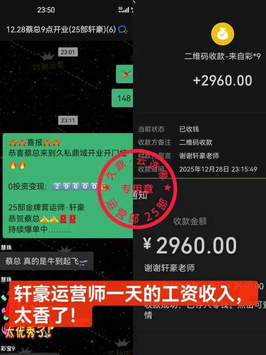 我家轩豪太棒了👍 一单运营工资2960💰 足不出户,日入四位数