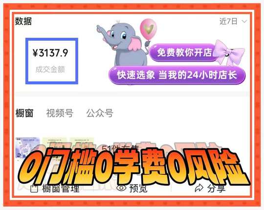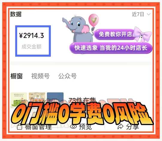 💥视频号小店今日爆单3137 0门槛❗0学费❗0风险❗ 0剪辑❗0直播❗0粉丝❗ 加入快速选象🐘免费教你开店赚💰