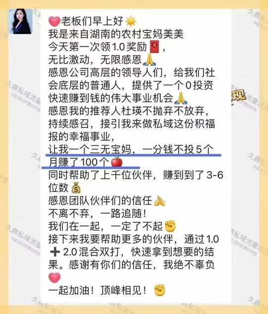 帮宝妈黄玲0投资测流变现3600 久鼎私域 人人可为 来者必赚!