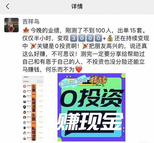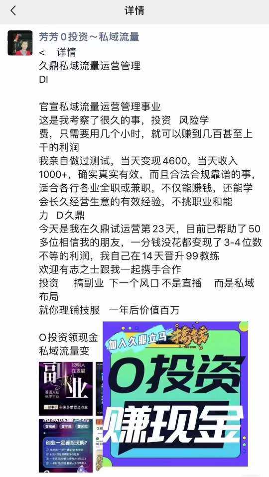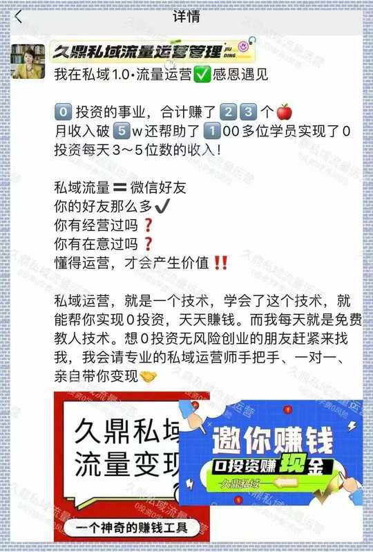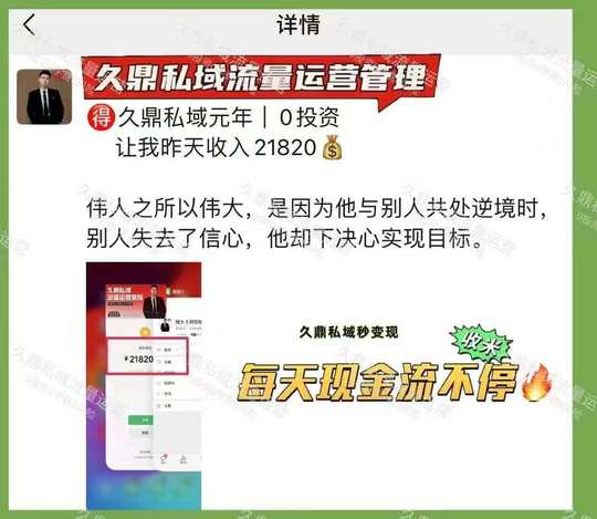 0投资‼️日赚21820 久鼎私域,一分钱不投的生意 每天3-5位数现金流入袋 来找我带你日日赚💰