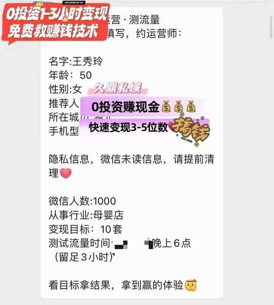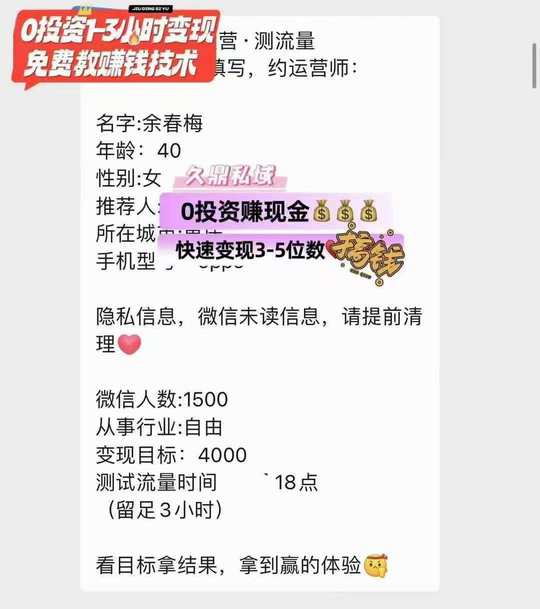 自由职业的预约测流变现➕27 久鼎私域0投资 1-3小时变现3-5位数 欢迎详询[勾引]