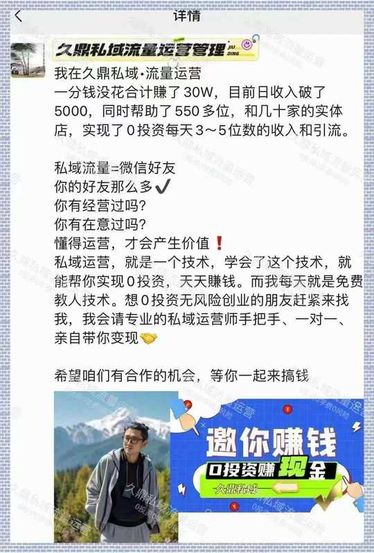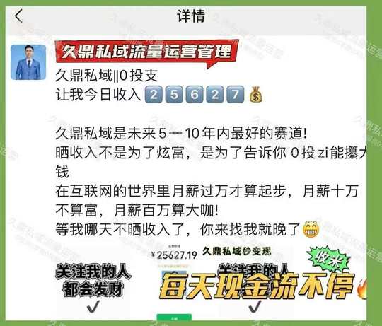 0投资‼️日赚38254 久鼎私域,一分钱不投的生意 每天3-5位数现金流入袋 来找我带你日日赚💰