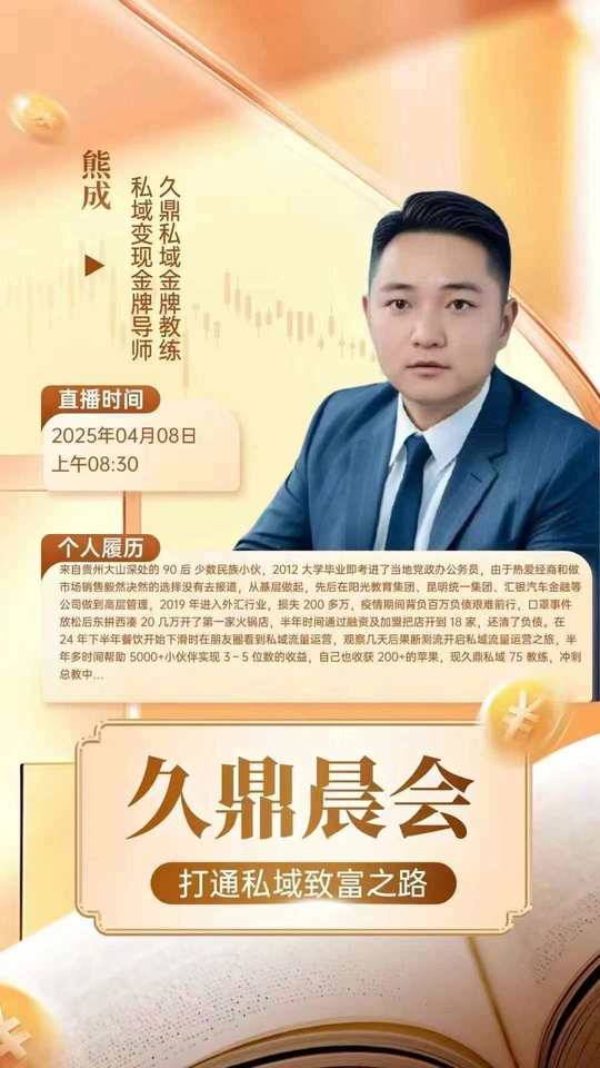 ‼️私域晨会直播‼️ 📣分享落地实战经验! 📣吸收充满能量的情绪价值! 📣提升自我,改变人生! 🕐开播时间:早上08:30 📣从每日晨会开始,打通私域致富之路!
