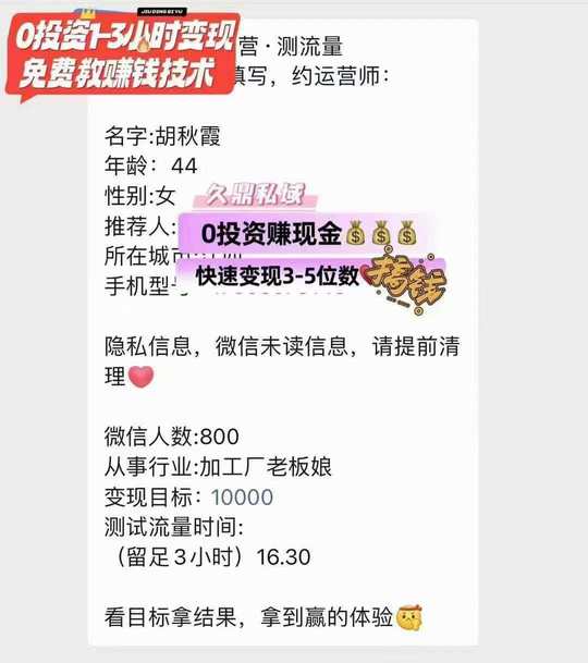 帮工厂打工的姐姐0投资测流变现2000 久鼎私域 人人可为 来者必赚!