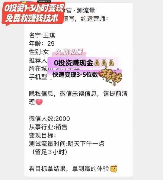 杨姐0投资测流变现8000 私聊我[勾引]带你玩转私域✔️