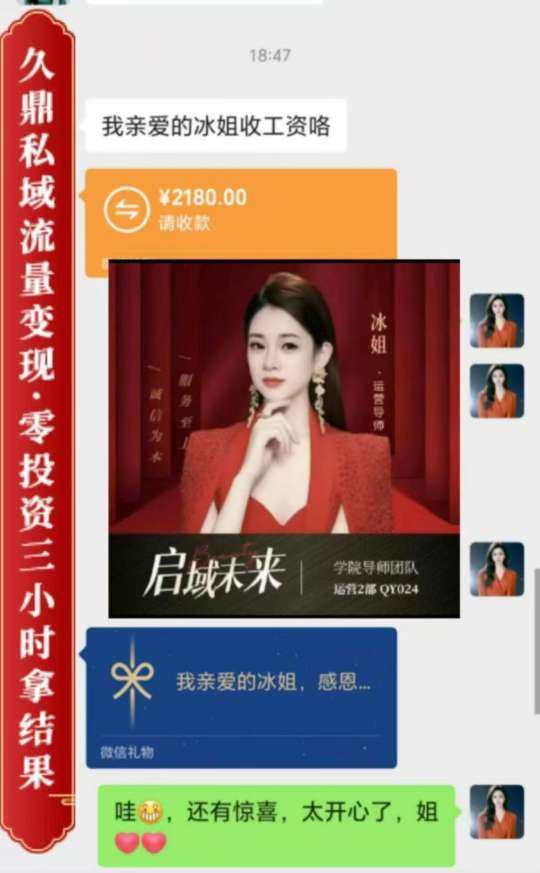 久鼎私域流量变现金牌教练 站在未来看现在 久鼎私域流量变现金牌教练 免费带人微信赚米 关键的关键: 全程: 0投资 0费用 0风险 让我们在1~3个小时变现3~5位数 太阳每天都是新的 对的时间遇到对的人 一切都是最好的安排 我们又见面了!