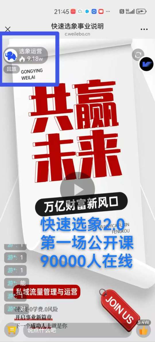 🔥快速选象𝟐.𝟎太火爆了 第一场公开课𝟗𝟎𝟎𝟎𝟎多人实时在线 视频号小店橱窗千万亿流量 泼天的富贵你接不接?[加油]
