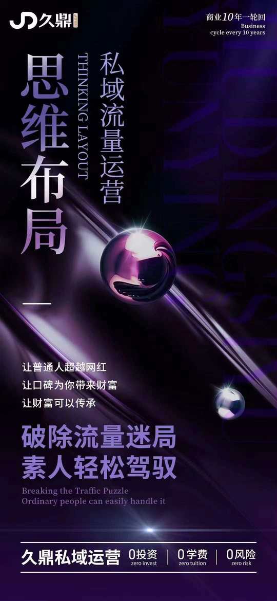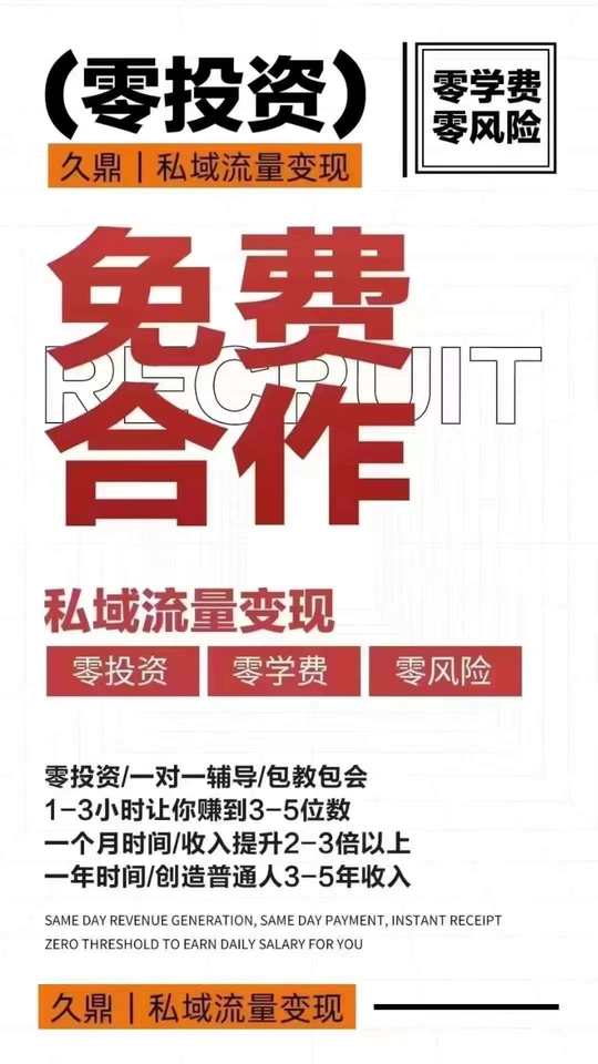久鼎私域流量变现 无需经验|不用投资|来者必赚 专业教育培训 打造属于你自己可以变现的流量 人人都能掌握的“流量密码” 只有两个字“真诚”