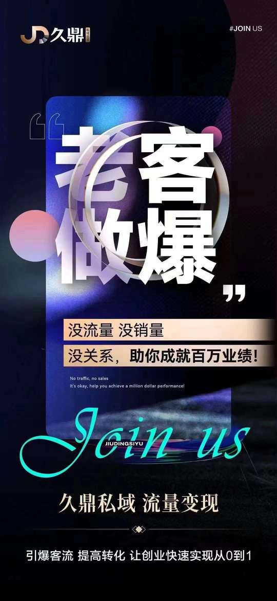 老客做爆 没流量没销量 没关系,助你成就百万业绩[加油]! 久鼎私域 流量变现 引爆客流 提高转化[强] 让创业快速实现从0到1