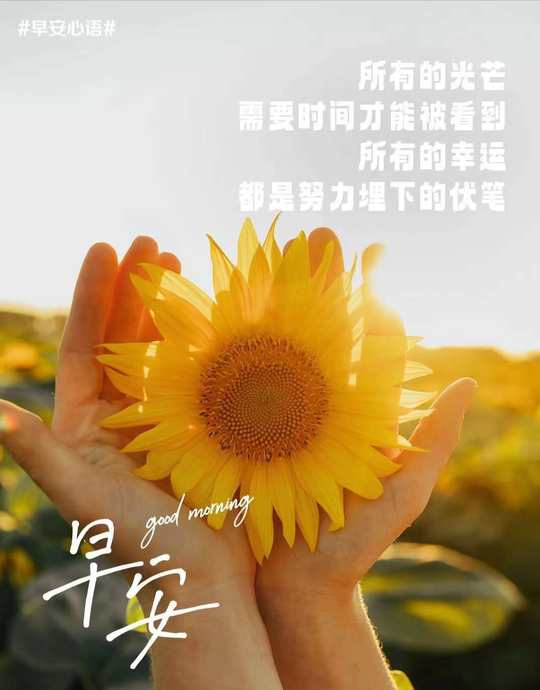 [福]你只管保持热爱,向光而行,自会有水到渠成的惊喜。一个内心有光的人,可以照亮自己的方向,也能与世界温暖相拥。新的一天,愿你拾一缕阳光,添一份美好。 早安☀