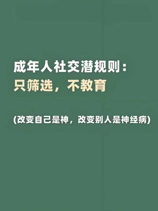成年人只做筛选不改变, 因为你是改变不了任何人, 你改变不了你的伴侣, 改变不了你的孩子, 改变不了你的父母。 你能改变的只有你自己, 当你改变了,这个世界就变了!