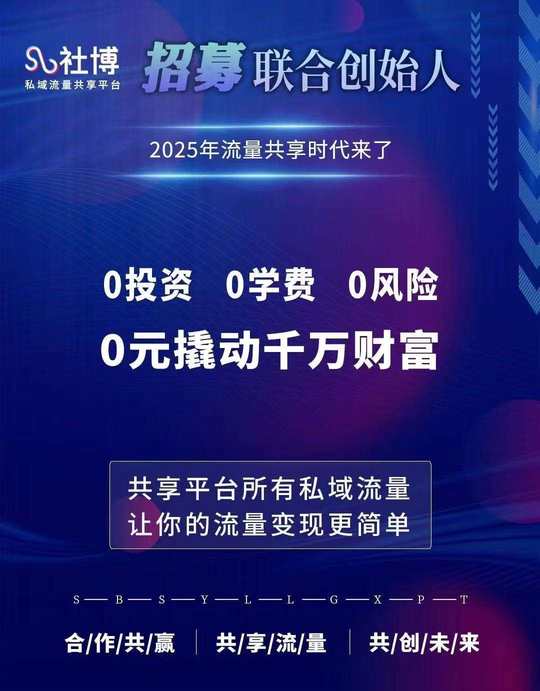 0元创业,也可以撬动千万财富,这就是“社博”私域流量共享平台。
