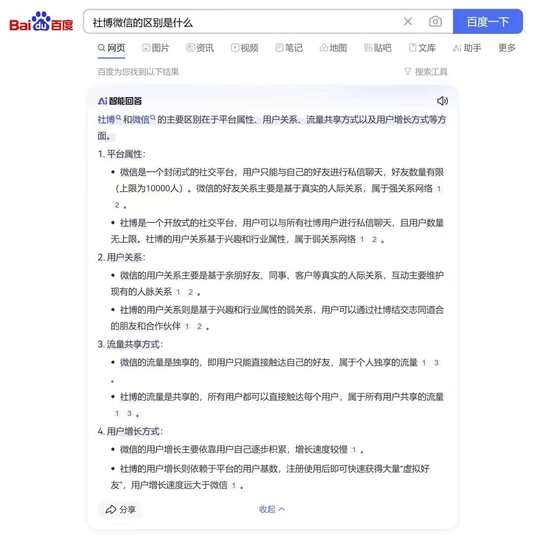 社博和微信有什么区别?百度Ai如此说