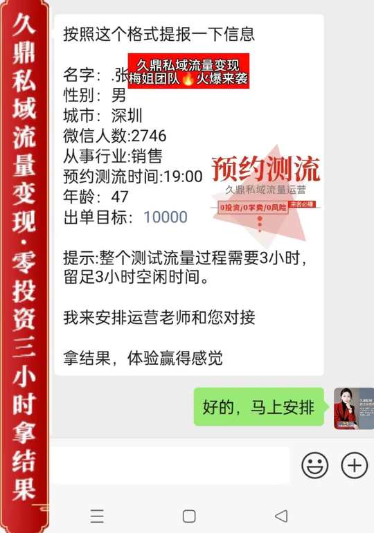 久鼎私域流量变现 人人可为,人人可赚 每天排队测流,已排到23号啦