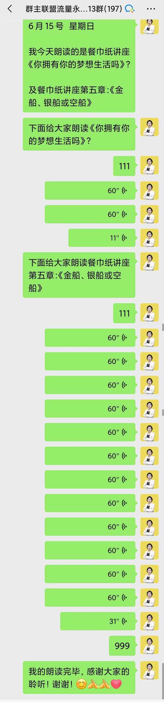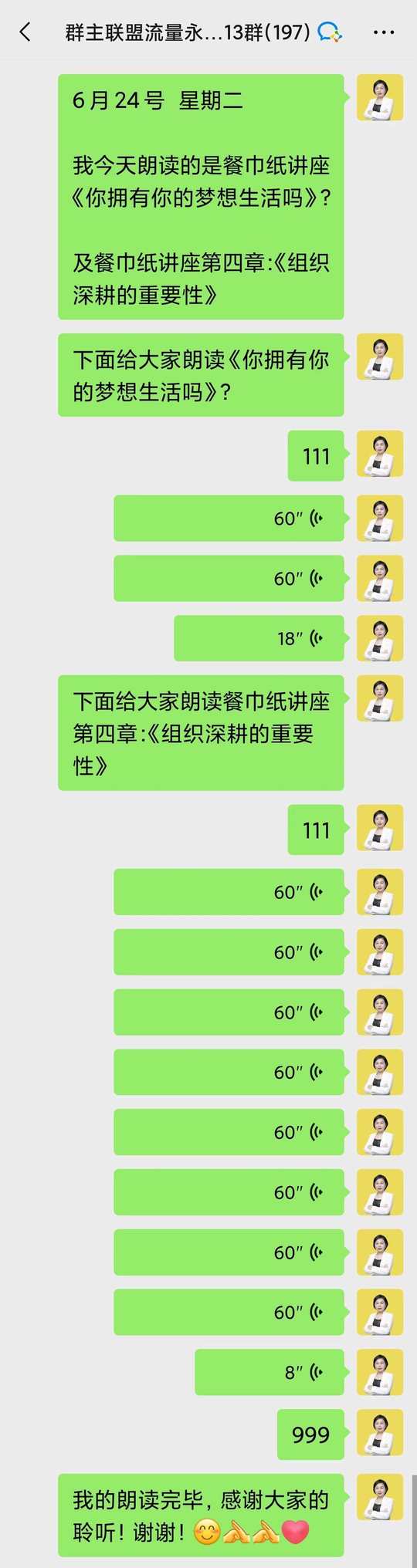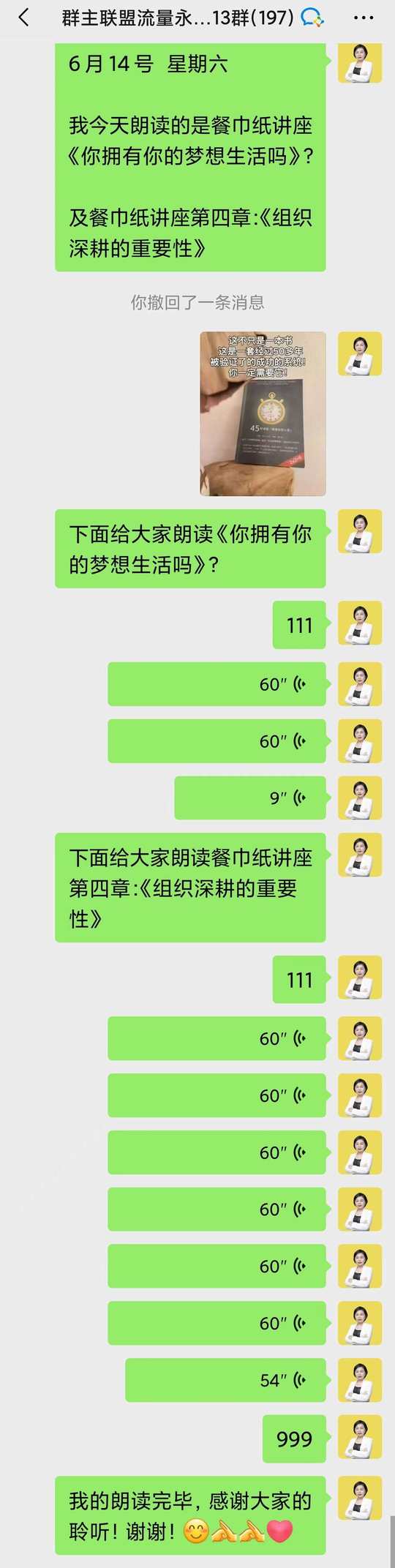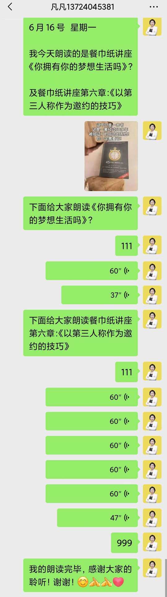每天早上七点和教练一起晨读,再和伙伴们一起朗读: